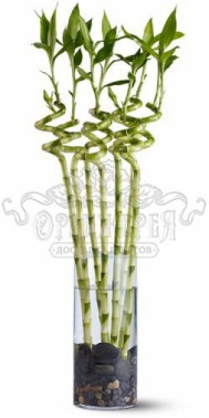 Научным ботаническим названием такого пока еще редкого явления в домашней композиции как Бамбук комнатный является Драцена Сандера. На самом деле это комнатное растение довольно неприхотливо в уходе и может произрастать в емкости с водой до года. В домашних условиях чаще всего практикуется выращивание именно карликовых форм.Стебли имеют соломовидную форму, с пустотами внутри, с коленчатыми перешейками, на которых расположены узкие листья линейной формы в виде коротких черешков длиной до 10 см. В зависимости от окраса и размеров различают несколько видов этого растения, наиболее распространенных в продаже: сизоватый, пестрый, многослойный, блестящий, бамбук Мюриэл.