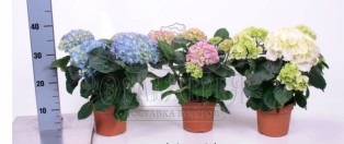 Гортензия или Гидрангея (Hydrangea) является листопадным красивоцветущим кустарником семейства Камнеломковых. В последние годы гортензия завоевала огромную популярность в качестве комнатного растения. Среди большого количества видов культуры в домашних условиях выращивается разновидности гортензии крупнолистной.В результате многолетней селекции были созданы десятки великолепных сортов, высота которых, как правило, не превышает 50-60см. Их крупные шарообразные соцветия имеют широкую гамму расцветок – белого, розового, красного, голубого и даже сиреневого.