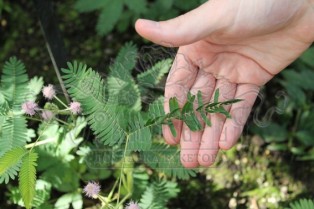 Мимоза стыдливая (Mimosa pudica) — травянистое (полукустарниковое) растение из рода Мимоза, семейства бобовых. Высота – от 30 см до 1,5 м.Родиной является Бразилия, но как заносное растение, встречается и в других тропических странах.Стебель прямой, имеющий колючки, двоякоперистые листья очень чувствительные, складываются при прикосновении к ним и на ночь.Все растение опушено мелкими, беловатыми волосками. Цветки небольшие, розово-сиреневые, собранные в шарообразные соцветия. В природе мимозу стыдливую опыляют насекомые и ветер.